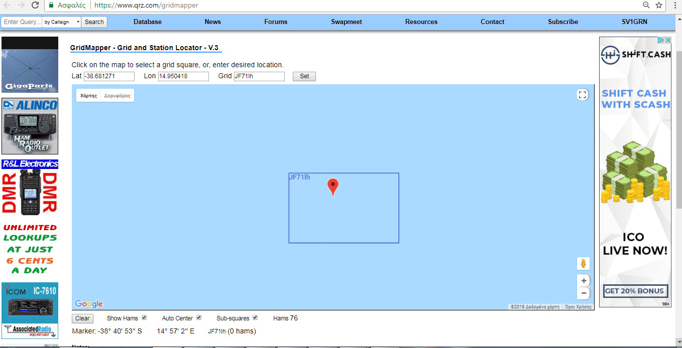 και η εύρεση του locator με τη βοήθεια του qrz.com